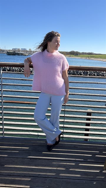 Oversize vest strikket i den blødeste Mohair Luxe fra Lang Yarns – med 2 tråde.