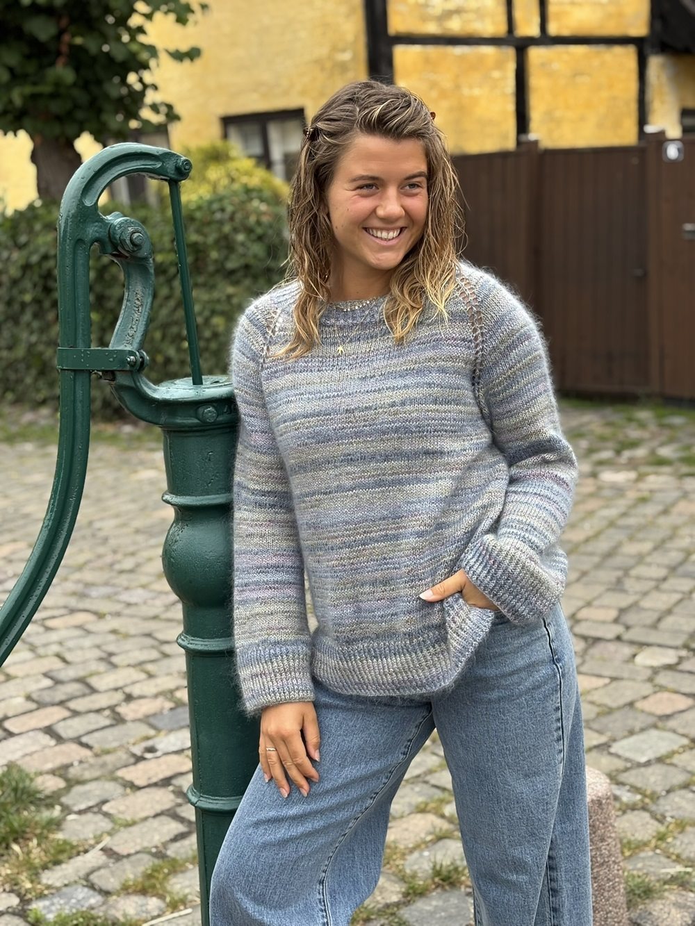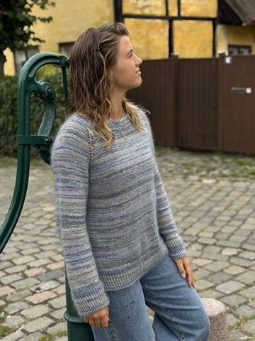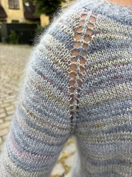 Siesta Blouse strikket i Fiesta garn, sammen med Mohair Luxe fra Lang Yarns